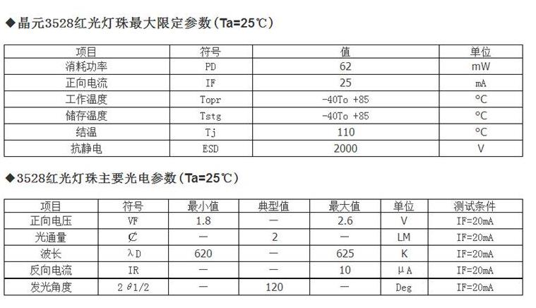 0.5W-1WLED燈珠 規格型號規格 工作標準電壓 電總流量等主要參數