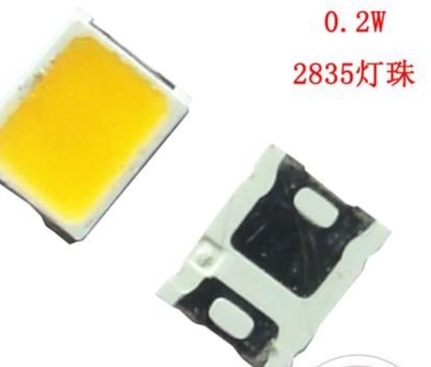 2835貼片燈珠是0.1W0.2W和0.5W的中間功率片超發光二極管。因為那個尺寸是2.8(長)×3.5(寬度)×0.8(厚度)mm,根據帖片LED珠的尺寸,命名為2835珠。