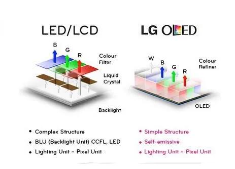 (LED和LCD結(jié)構(gòu)圖,圖片來(lái)源網(wǎng)絡(luò)侵刪) 下面對(duì)這兩種顯示器進(jìn)行詳細(xì)介紹: 一:LED顯示器 LED顯示器就是以LED發(fā)光二極管作為背光源的顯示器。也就是說(shuō),LED顯示器也是液晶顯示器LCD的一種。 液晶是液態(tài)的晶體,本身是不會(huì)發(fā)光的,它只是輔助折射光,而LED顯示器的背光源就是LED發(fā)光二極管。 二:LCD顯示器 LCD顯示器通常是指以陰極射線管CCFL作為背光源來(lái)發(fā)光的,進(jìn)而通過(guò)晶體進(jìn)行折射的顯示器。 LCD顯示器理論上是包含LED顯示器的,LED顯示器只不過(guò)把以發(fā)光二極管為背光源的LCD顯示器,單獨(dú)稱為L(zhǎng)ED顯示器罷了。 再來(lái)談?wù)凩ED顯示器和LCD顯示器的區(qū)別: 區(qū)別一:背光源不同。 從上面的概念可知,LED顯示器和LCD顯示器最大的區(qū)別就是背光源不同。LED顯示器的背光源是LED發(fā)光二極管,LCD顯示器的背光源是非LED發(fā)光二極管,比如陰極射線管等。 區(qū)別二:亮度的區(qū)別。 由于LED的亮度,比陰極射線管的亮度大,所以在亮度方面,LED顯示器比LCD顯示器更亮。 區(qū)別三:功耗不同。 功耗方面,LED發(fā)光二極管消耗的電能是小于陰極射線管的,所以LED顯示器功耗比LCD顯示器低。 區(qū)別四:色彩表現(xiàn)不同。 由于陰極射線管在色彩純度方面的表現(xiàn)不如LED發(fā)光二極管,所以LED顯示屏的色彩表現(xiàn)要優(yōu)于LCD顯示器。 小知識(shí): 上面所說(shuō)的LED顯示屏并不是真正意義上的LED顯示屏,他只是LED背光顯示屏,仍然屬于LCD范疇,真正的LED顯示屏幕是OLED顯示器。OLED顯示器不屬于LED顯示器和LCD顯示器的任何一種,它是一種不需要背光源的顯示器顯示技術(shù)。但是OLED屏幕有一個(gè)缺點(diǎn),就是頻閃,相比于LCD屏幕,對(duì)眼睛傷害更大。 LED和LCD的區(qū)別有四點(diǎn),最主要的區(qū)別是背光源不同,其它還有亮度、功耗、色彩表現(xiàn)等方面的區(qū)別。 LCD與LED液晶顯示屏有什么區(qū)別 LED顯示器與LCD顯示器相比,LED在亮度、功耗、可視角度和刷新速率等方面,都更具優(yōu)勢(shì)已取消到該網(wǎng)頁(yè)的導(dǎo)航。利用LED技術(shù),可以制造出比LCD更薄、更亮、更清晰的顯示器。